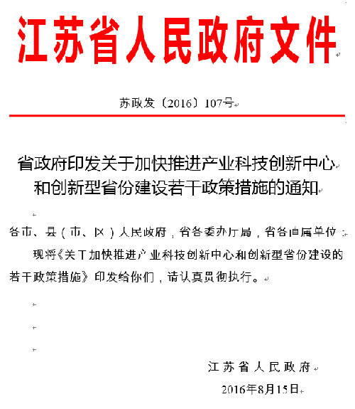 35﹒实行积极的财税政策。省财政从2016年起3年内统筹安排省级各类资金和基金超过1000亿元,支持“一中心、一基地”建设。强化战略导向,实施省前瞻性产业技术创新专项和科技成果转化专项。加大绩效评价力度,提高政策和资金的效益。鼓励知名科学家、海外高层次人才创新创业团队、国际著名科研机构和高等院校、国家重点科研院所和高等院校在苏发起设立专业性、公益性、开放性的新型研发机构,最高可给予1亿元的财政支持。中央直属企业、国内行业龙头企业、知名跨国公司在苏设立独立法人资格、符合江苏产业发展方向的研发机构和研发总部,引入核心技术并配置核心研发团队的,最高可给予3000万元的财政支持。对基础性、公益性的科技基础条件平台、工程技术研究中心等,省、市财政根据情况给予经费支持。鼓励和引导社会力量通过捐资捐助支持省属高等院校发展。进一步加大生命健康、资源环境、公共安全等社会事业领域科技创新投入力度,优化完善农业科技创新的财税支持方式,启动建设江苏现代农业产业技术创新园区,增加民生科技供给,提高科技惠民水平。