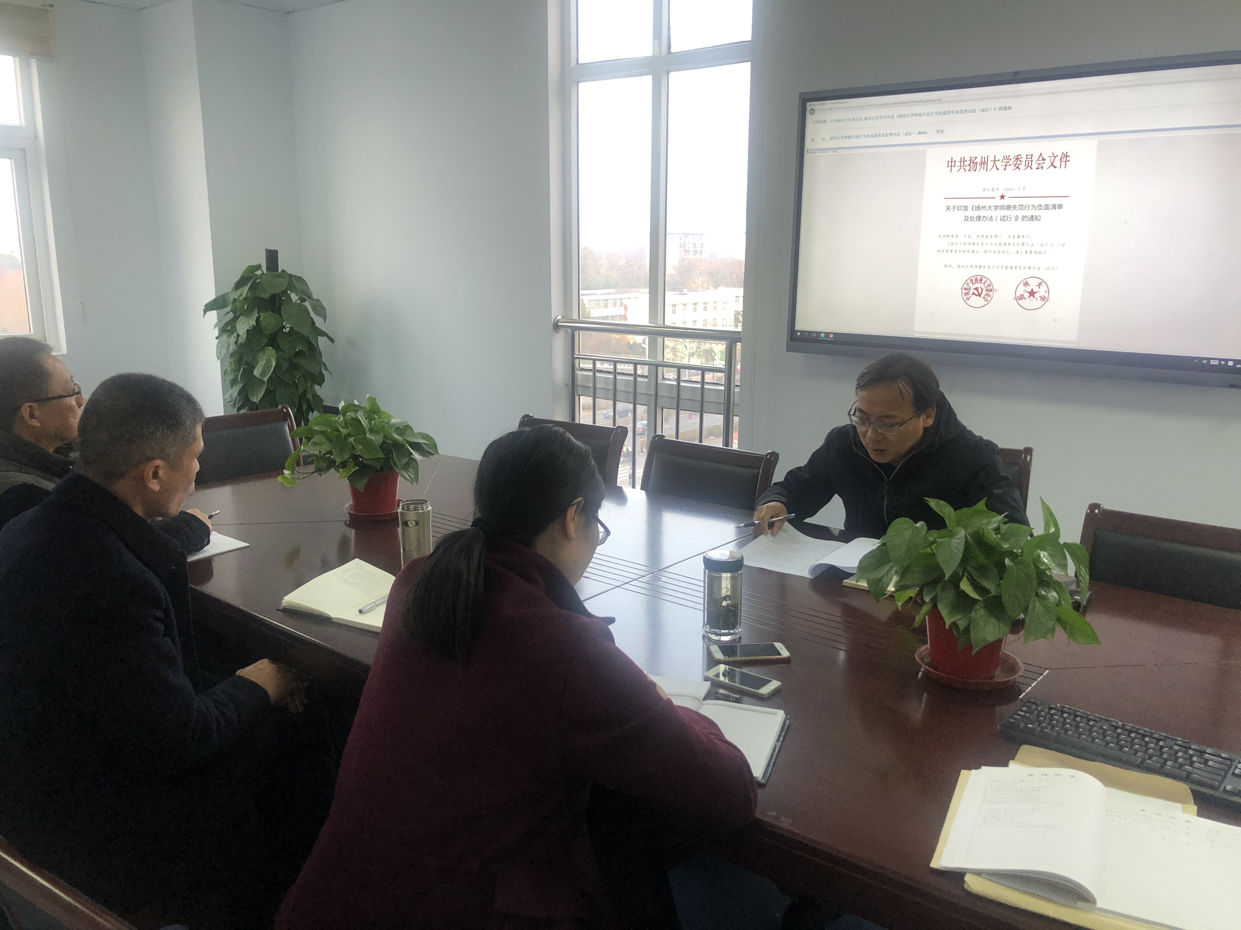 为落实全国、全省教育大会精神,依照校党委教师工作部要求,2019年12月18日下午,采购管理办公室召开师德师风建设会,全体成员集中学习了《扬州大学师德失范行为负面清单及处理办法(试行)》(扬大委师〔2019〕5号)等文件。