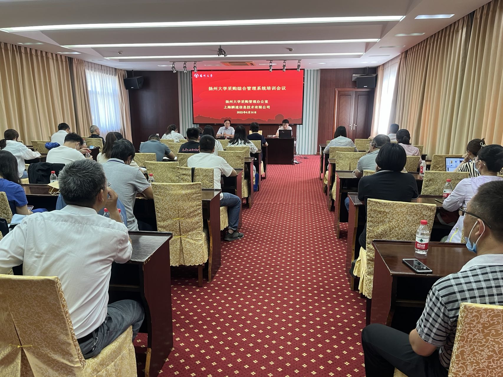 6月16日下午,采购管理办公室在瘦西湖校区虹桥专家楼三楼会议室举办“采购综合管理系统”培训会。刘定岭主任主持会议,我办全体人员,学校五大采购部门、保卫处、信息化建设与管理处、工会以及社会代理机构等相关人员参加了培训。