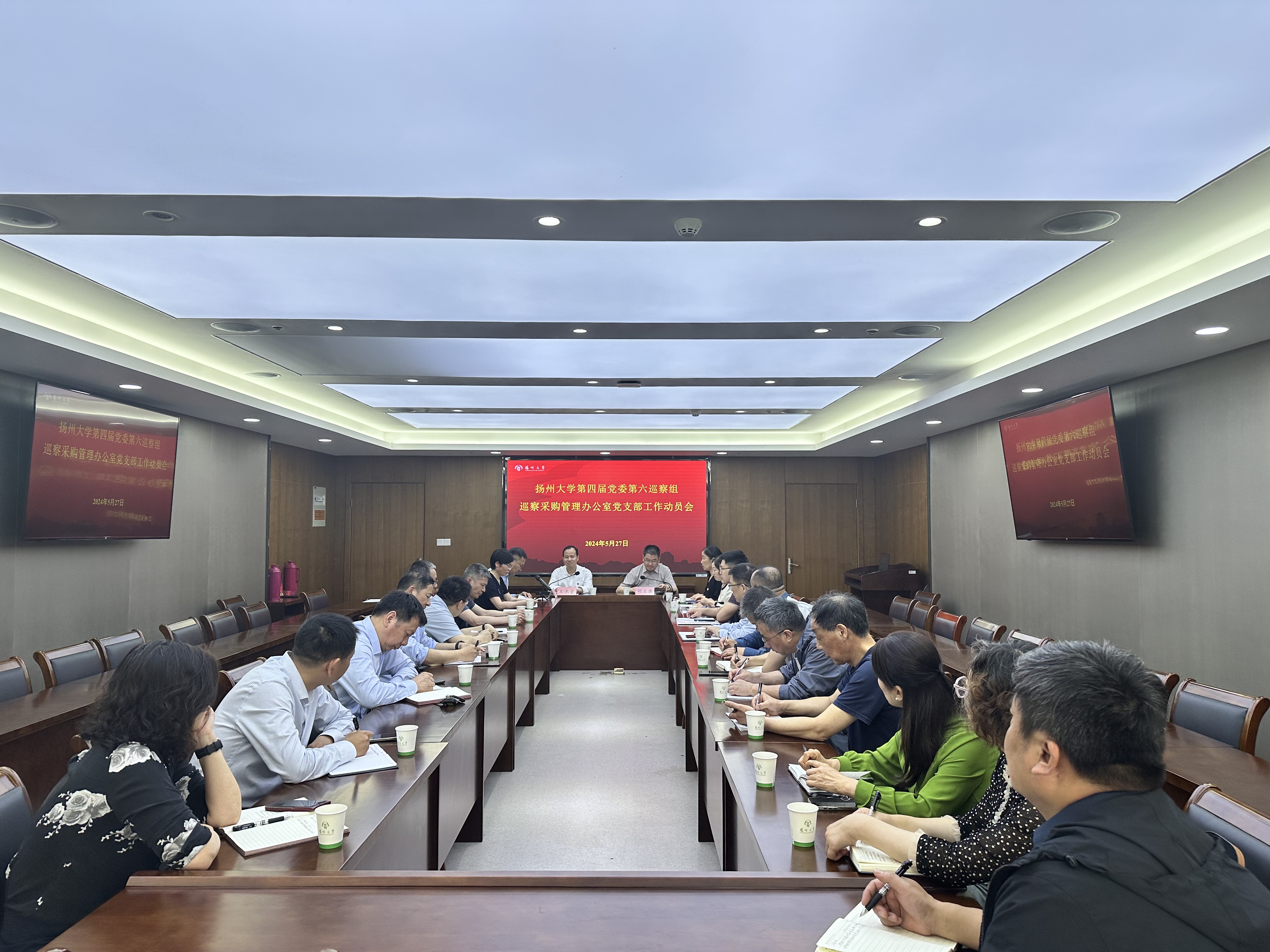 扬州大学第四届党委第三轮校内巡察第六巡察组全体成员,采购管理办公室全体干部职工,采购部门部分处、科级干部,学院教师代表参加了会议。