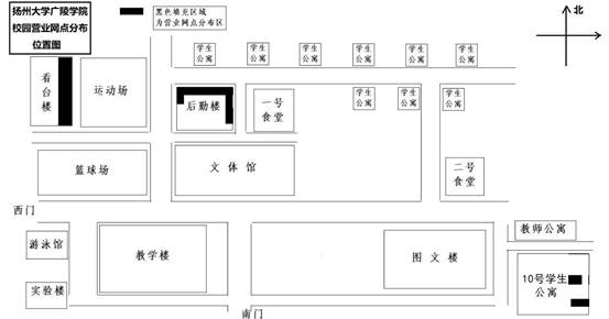 (一) 校园内现有商业网点分布示意图如下: